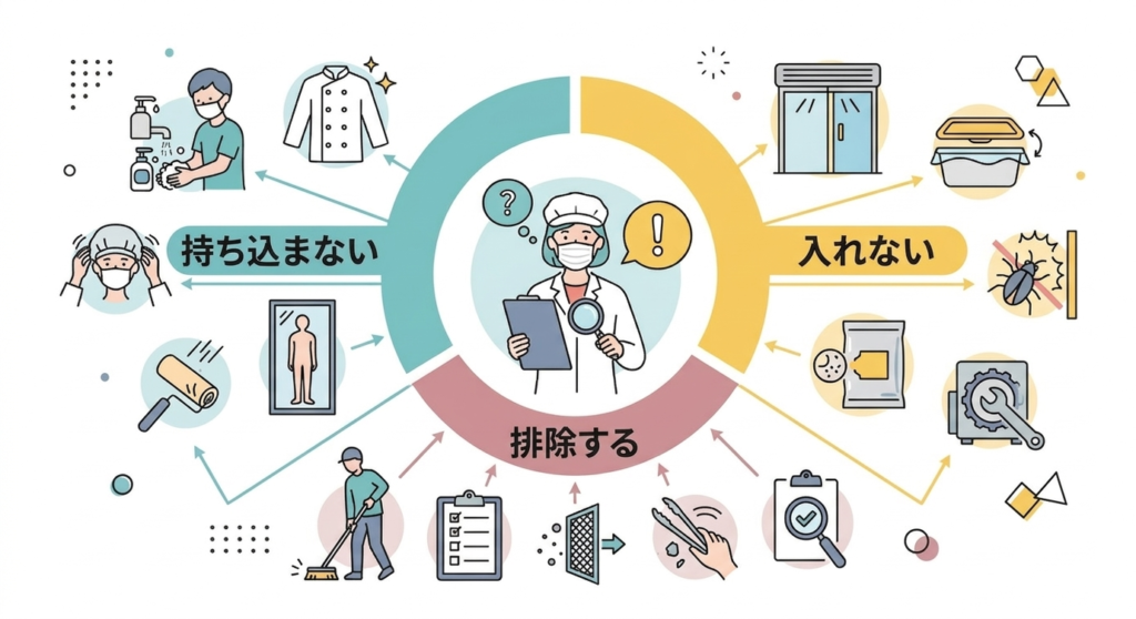 挿絵タイトル:三原則をもとに何が異物混入の原因になるかを追究する